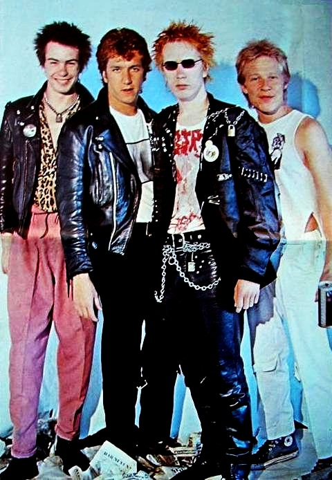 吉他手史蒂夫·琼斯(eve Jones)和鼓手保罗·库克(Paul Cook)是一家流行服饰专卖店的店员,店主马尔柯姆·麦克拉伦(Malcolm McLaren)是一位满脑子反社会、反传统思想的商人,虽然他经营的商店十分赚钱,但他的抱负并没放在商业上,而是一直试图成为音乐制作人和乐队经纪人,所以他和店员史蒂夫也不是一般的老板与雇员关系。贝斯手格伦·马特洛克(Glen Matlock)也在该店工作。正是在这家商店,歌手约翰·里顿(John Lydon)——后来表演时的艺名改为约翰尼·罗登(Johnny Rotten),遇到了乐队的其它成员,并受邀加入乐队。当乐队正处在磨合期,尝试一些简单的摇滚乐的时候, 罗登就开始演唱一些关于无政府主义、堕胎、暴力、法西斯主义和绝望等内容的歌曲。如果不是罗登,英国政府也不会感到威胁。罗登指明了乐队发展的方向,即最大限度的对抗和威胁。单曲《Anarchy in the U.K》因其极具嘲讽的内容,使得东家公司EMI公司不得不和乐队解约。马特洛克在乐队的下一首单曲《God Save the Queen》发行之前就退出了乐队,该单曲在BBC电台遭到禁播,马特洛克的位置由希德·维瑟斯(Sid Vicious)代替。1977年乐队发行了一张专辑,并于次年前往美国举行巡回演唱会,巡唱持续了十四天。在完成旧金山的演出后,成员罗登离队回到了纽约。当年的晚些时候,他成立了Public Image Limited乐队。虽然麦克拉伦再三努力,想保证乐队的完整性,但是库克和琼斯还是相继离开,乐队宣告解散。此后的二十年,乐队大量的相关音乐,诸如样碟、重新包装的老歌和演唱会唱片被多家公司发行。