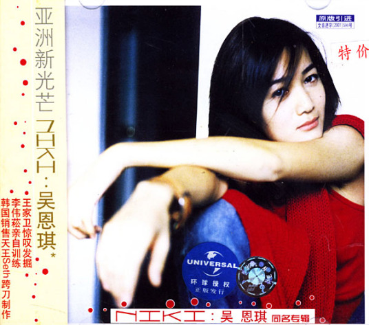 • 介绍:吴恩琪(Niki)的魅力除了受到媒体、演艺圈的好评外,她独特的嗓音也受到了近年来最炙手可热的音乐制作人李伟菘的赏识。“Niki的声音有非常多的可能性”——那是伟菘在听过她的声音后发出的第一句赞叹﹗环球唱片因而斥下重金,送她到李伟菘、李偲菘的新加坡音乐学院闭关苦练半年,让她的歌唱技巧更加成熟。幸运的的吴恩琪,先有王家卫导演的发掘,后有亦师亦友的伟菘,从先期训练到音乐制作的一路作陪,堪称是唱片圈最引人注目的新光芒!