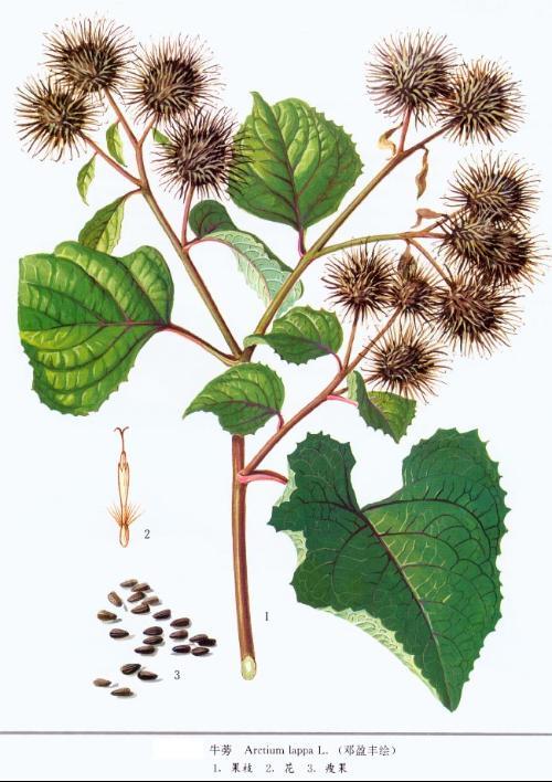 美食功效:牛蒡子为解热、解毒药,有利尿排脓作用。根、叶:强壮、利尿,促进新陈代谢、血液循环,通经、利大便,适用于脑溢血、脚气等症,外用有消炎、镇痛效果。