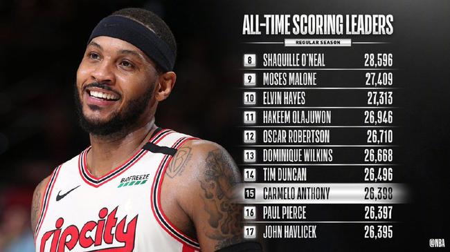安东尼总得分升至历史第13!超越人类电影精华
