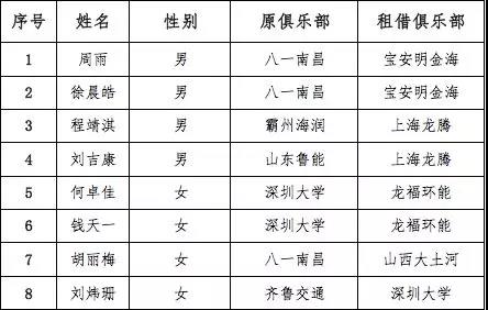 2018-2019赛季乒超联赛租借成功运动员
