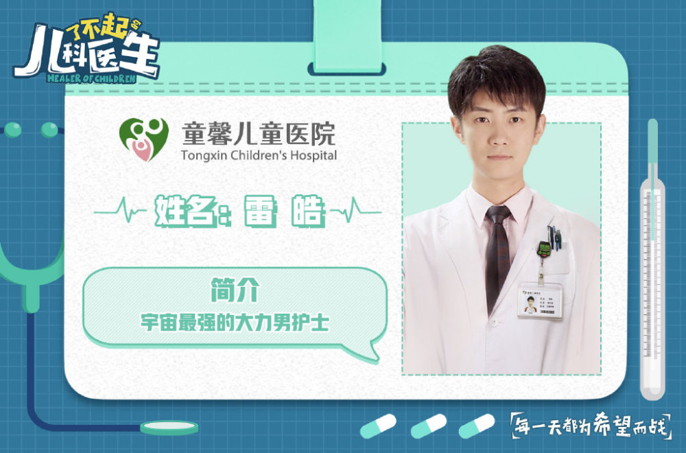 《了不起的儿科医生》作为一部深切关照中国儿科医生行业,展示青年儿科医生成长,温暖刻画儿科医生与“宝贝”患者及其家庭关系的都市医疗剧,讲述了在当下这一儿童基数大、儿科医生资源短缺的现实状况下,一群饱含职业热情的新生力量,走向儿科这个战场,为守护儿童的生命防线竭尽全力救助儿童的故事。剧中,李欢首度出演白衣天使,化身为童馨儿童医院的一名男护士雷皓,他不仅时刻处于“战斗状态”,做好面对突发状况的准备,还拥有一颗温暖的心,在守护患者生命的同时为饱受病痛折磨的他们带来欢乐。