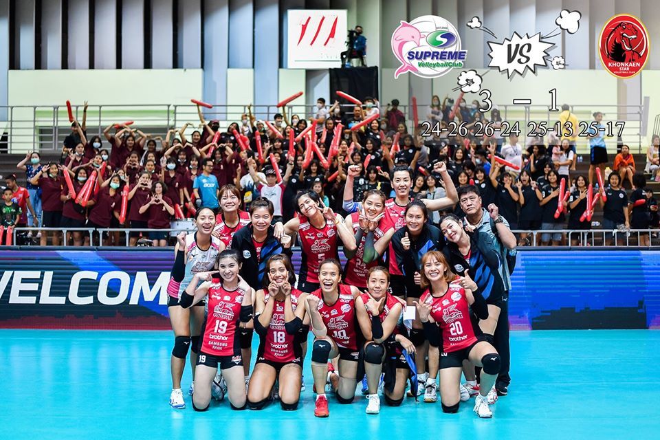 另一边,钻石食品同样先五局3-2(23-25,25-18,25-15,25-18,15-10)险胜劲敌暖武里3BB,郑益昕此役独揽23分,杜清清砍下7分;周末以3-0(25-14,25-20,25-11)横扫相对较弱的曼谷彩蝶,技术统计暂无。积分榜上,春武里以三战全胜排名榜首,钻石食品2胜1负暂列第四。