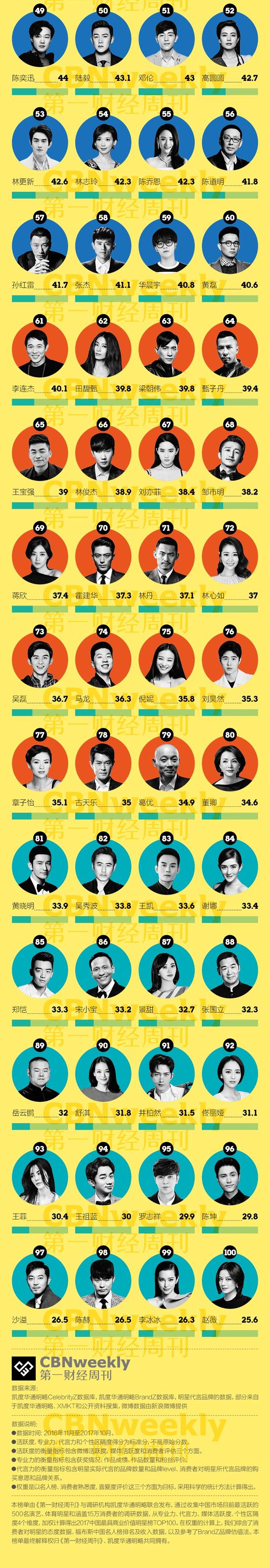 所有榜单都有自己的价值观。公平地讲,《第一财经周刊》绝非流量的追捧者。回头看我们寻找中国最具商业价值明星的初衷,其实正是希望为明星的专业表现和市场价值重新制定标准。