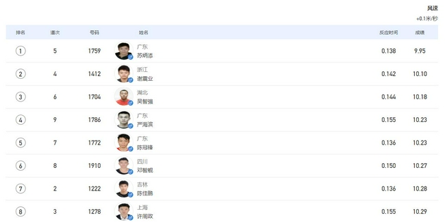 9秒95虽然没有打破亚洲纪录,但也创造了全运会纪录。
