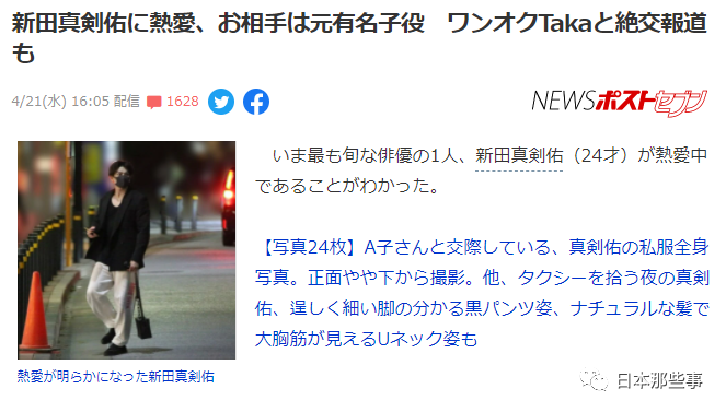 4月21日,新田真剑佑交往的女友身份被挖出来↓