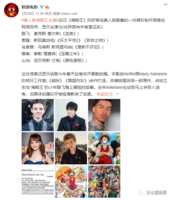 根据外媒的爆料,真剑佑去到好莱坞发展之后的第一部作品,是真人版的《海贼王》,他将饰演索隆。