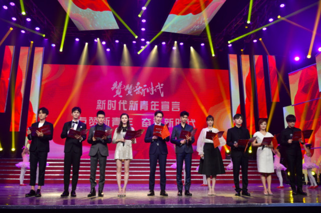 新青年榜样艺人用慢慢的正能量和爱国情怀朗声宣读:“我们是新时代中国青年,拥抱新时代,奋进新时代,让青春在为祖国、为人民、为民族、为人类的奉献中焕发出更加绚丽的光彩。实现中华民族的伟大复兴,不负党的期望,不负人民的期待,不负民族的重托,不负伟大的新时代!”