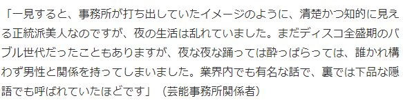 嘛,这个中详细,只有当事人才清楚。。。 要知道,有相关演艺圈人员透露,高树沙耶的私下生活相当之乱。当年和中西圭三离婚就是因为老实巴交的中西发现妻子高树的夜生活过于混乱。虽然外表是正统美女,其实私下经常喝得烂醉,当时正值迪斯科泡沫经济时期,高树经常跳舞跳一整晚喝得不省人事。而且不管是谁,只要是男的就可以与其发生关系。这点业界都是有名的,高树沙耶被人评价为“金玉其外,败絮其中”。中西发现她与自己的熟人也有关系后就跟她离婚了。所以后来的与四个男人同居这件事也不足为奇了。。。