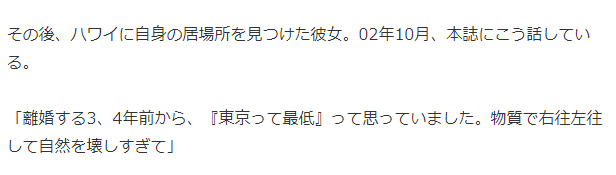 于是,2008年退出演艺圈后,她跑到了冲绳的石垣岛上开辟荒地。也许就如她自己所说的一样?厌倦大城市了,所以想去乡下生活一段时间。