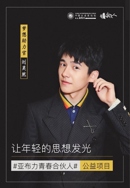 作为新生代的偶像代表,刘昊然不是第一次与公益结缘。16年的芭莎明星慈善夜“画出生命线”的直播活动,17年的“一本爱心”公益视频录制活动都有他的身影。相信这次作为亚布力青春合伙人的梦想助力官,也会为大学生逐梦的道路上做出很大的推动,让更多的大学生参与到青春合伙人的活动中来。