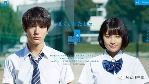 而在资生堂sea breeze的广告里,中川和广濑丝丝扮演一对情侣。两人从青涩的学生时代演到成熟的大人风,持续让人脸红心跳。