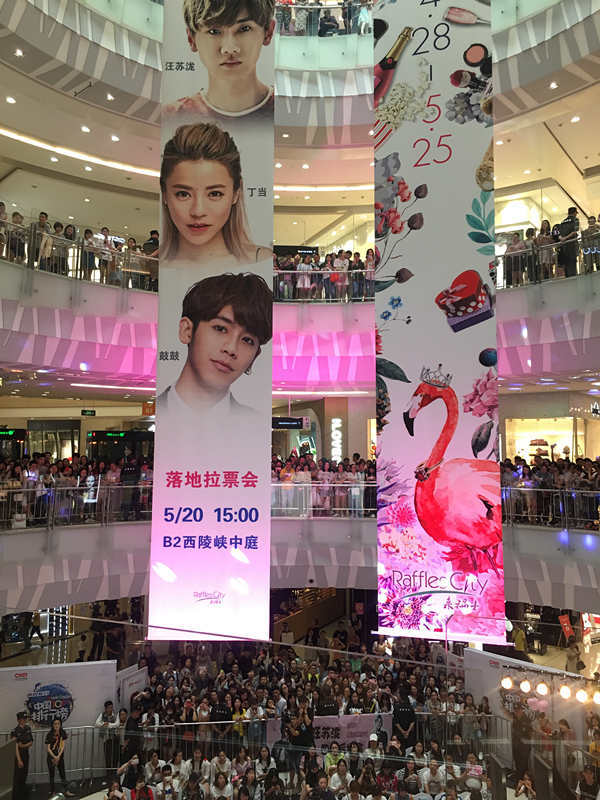 5月20日,中央人民广播电台音乐之声2016年度 MusicRadio携程旅行中国TOP排行榜颁奖盛典系列活动落地拉票会第三站在成都来福士广场B2西陵峡中庭圆满落幕。MusicRadio音乐之声DJ寅子携人气歌手丁当,鼓鼓以及汪苏泷,为粉丝们奉上了一场精彩的音乐盛宴。