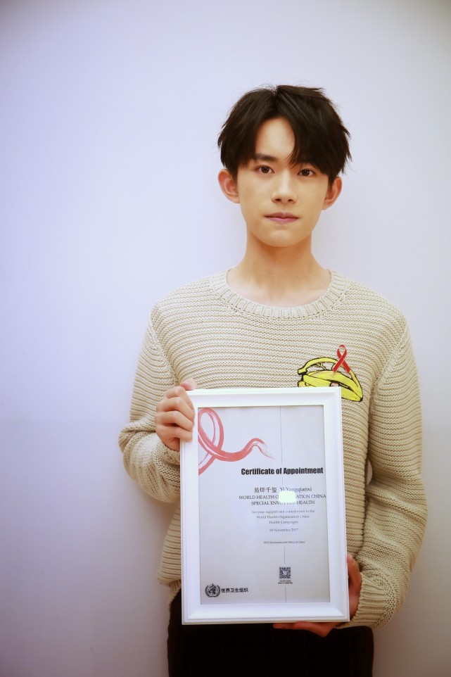 在第三十个世界艾滋病日来临之际,世界卫生组织于2017年11月18日在湖南卫视《快乐大本营》(在线观看)的录制现场任命中国优秀青年代表吴牧野、易烊千玺、王嘉、关晓彤为“世界卫生组织中国健康特使”,并颁发任命证书。在录制现场,国际钢琴家吴牧野,青年演员易烊千玺、王嘉、关晓彤还共同跨界合作表演2017年世界艾滋病日的公益主题歌《拥抱你》。