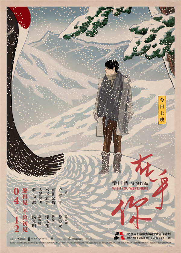 ??? 一同发布的“望鹤”手绘海报则采用了日本传统的浮世绘风格:漫天飘落的雪粒与泛黄的色调展现出版画般的优雅质感,遥远的雪山与苍劲的古松也营造出一派古朴安详。而主人公俞飞鸿一席大衣手套、围巾长靴的配置却是鲜明的当代时尚,仿佛来自另一个世界。仔细观察不难发现,伫立在“雪地”上的俞飞鸿正深情地注视着眼前的鹤颈,仿佛想起了尘封的往事,又似见到了羁绊未解的故人,欲言又止。究竟这只鹤有着怎样的寓意?相信我们走进影院都能找到自己的答案。