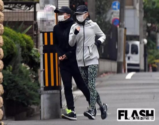 媒体称是“慢跑约会”,照片拍到两人一起在街上并肩慢跑的情景。