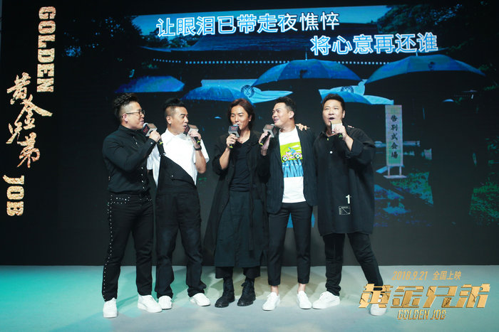 9月17日,电影《黄金兄弟》在北京举行“古惑不再,兄弟永在”中秋重聚会。导演兼主演钱嘉乐,监制曾志伟,主演郑伊健、陈小春、谢天华、林晓峰、雅玫、魏允熙、纪焕博、蒋中炜,主创悉数到场。此外,与五兄弟渊源颇深的大鹏,也来到现场支持。 在现场,导演、监制分享了五兄弟重聚大银幕的缘由及过程的不易,也对《黄金兄弟》影片本身进行了全方位解读。