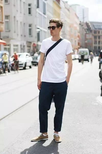 无论是夏季内搭与外搭都少不了它,男生穿对了白T,基本撩人于无形。搭配简单的西裤就能出门,干净整洁,满满欧美风,搭配斜挎包也更加出彩。