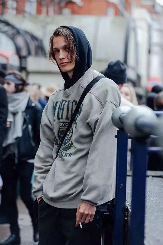 单穿简单整洁,叠穿衬衫更加具有层次感,提升卫衣的品质感。还可以通过渔夫帽、毛线帽等单品让整体造型更加潮酷。