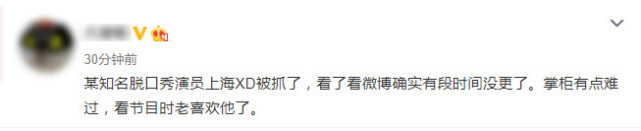 今天上午,就有娱乐博主爆料称某知名脱口秀演员在上海吸毒被抓,并称其微博有段时间没更新了。