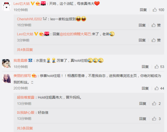 网友看到照片也纷纷表示HOLD住姐真是什么都能HOLD住,从浴缸就能看出妈妈有多猛。