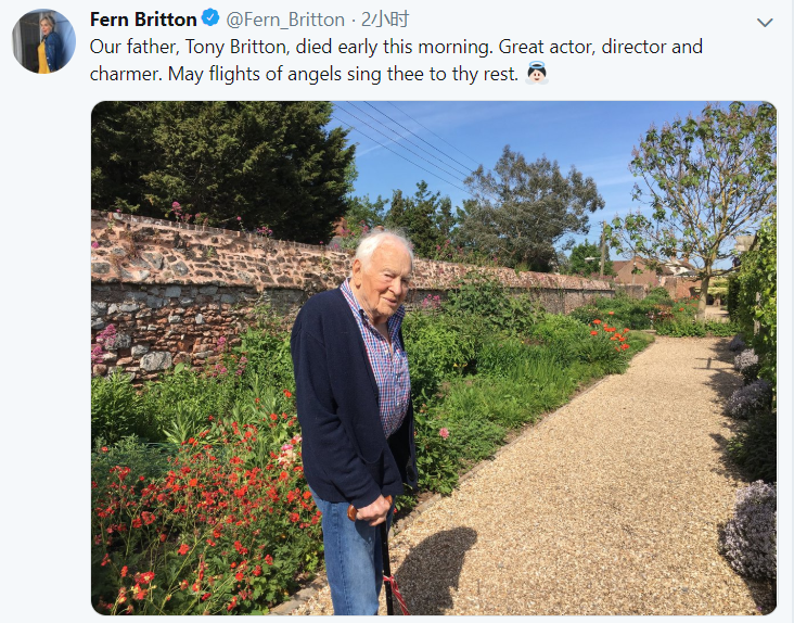 托尼·布里顿的女儿Fern Britton,于今日在社交平台上发表声明表示父亲已经去世。大意是,我们的父亲托尼·布里顿于今天清晨去世了,他是一位伟大的演员、导演和魔术师,愿天使的歌唱让您安息。她还附上了一张父亲的照片用以追思。