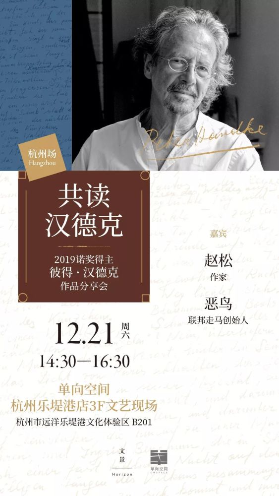 在这场分享会中,作家赵松和联邦走马创始人恶鸟,将从各自的角度出发,与读者分享他们眼中的汉德克和他的作品。
