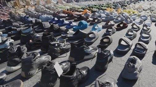 但是其实发售的Yeezy仅仅是侃爷Yeezy帝国中的冰山一角,近日,Kanye West在接受《Forbes》专访中展出了数量巨大的Yeezy Sample,这1000多双的sample均陈放在kanye的后花园,据他的话说:“这些东西就像爱情,是无法以数量计算的,我做这些对我带来的快乐是无法估量的。”这些Sample都是一些还未发售或者设计不成功的版本。数量巨大让人感叹,原来kanye West的那句:希望全世界的人都能穿上Yeezy并不是空穴来风,用超限量抓住人们眼球,再慢慢增大货量让人们可以买到自己想要的鞋款,不得不佩服Yeezy的营销手段实属高超。