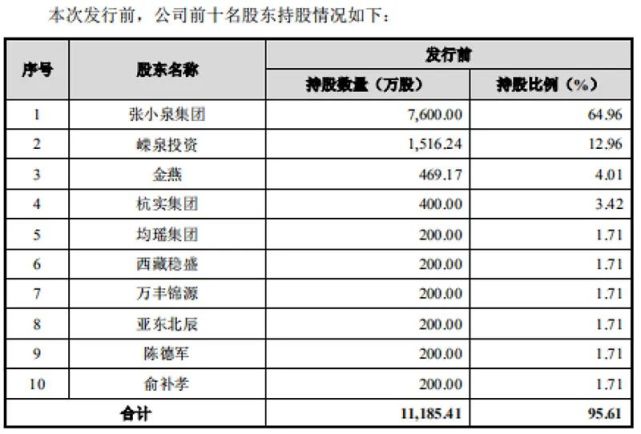 招股书(申报稿)介绍,亚东北辰、均瑶集团、陈德军、杭实集团、万丰锦源均是张小泉前十大股东,持股比例均为1.71%。